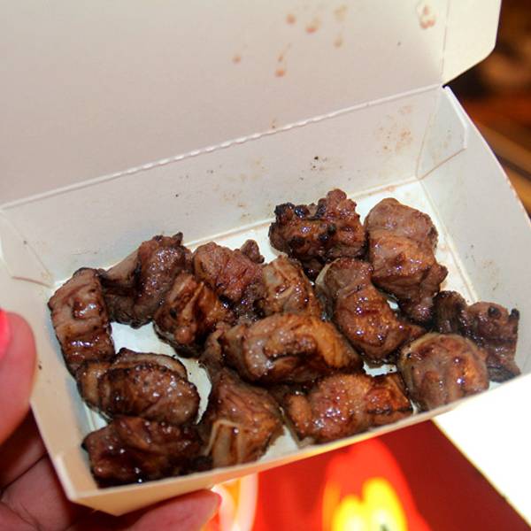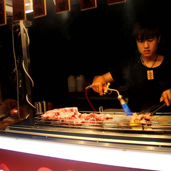 车子把我们送回酒店,本来想去恒春吃些老字号的店,但是一天行程下来也真的有点累,想想依然是垦丁夜市。 火焰骰子牛 牛肉看纹路蛮好的。现场制作,用喷枪炙烤的。 一份刚好一块牛肉,老板长得小清秀哦 嘻嘻。 牛肉味道蛮赞的 汁水多 油脂丰沛,肉质好 赞一记~