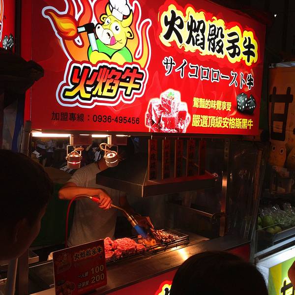 车子把我们送回酒店,本来想去恒春吃些老字号的店,但是一天行程下来也真的有点累,想想依然是垦丁夜市。 火焰骰子牛 牛肉看纹路蛮好的。现场制作,用喷枪炙烤的。 一份刚好一块牛肉,老板长得小清秀哦 嘻嘻。 牛...