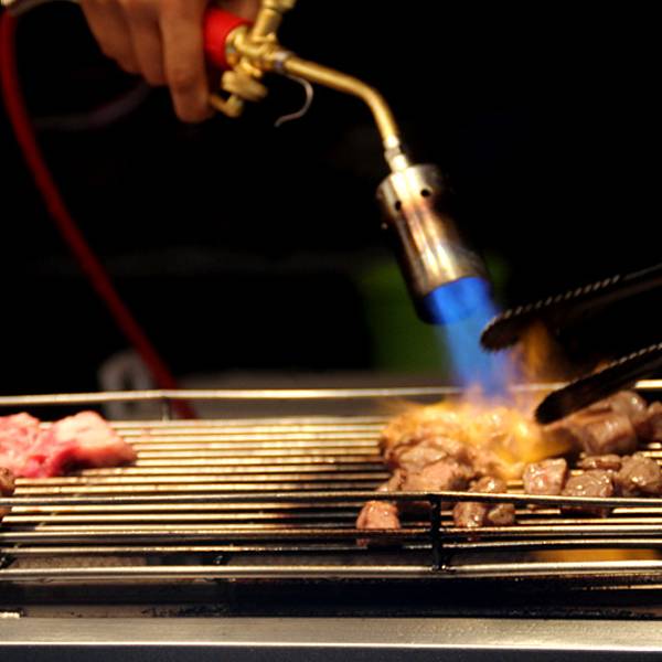 火焰骰子牛这名字起的形象,就像骰子大小的牛肉粒用喷枪烤制后涂上酱汁,味道也不错。