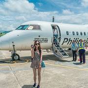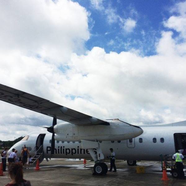 由于安排的座位并不靠窗,登机之后在飞机隆隆隆的发动机声音中我也是起飞就睡了过去,飞行过程中就没拍什么照片了。一个小时不到的飞行,到达Caticlan机场。Caticlan机场位于长滩岛南部的马雷,特别小,只能起降...由于安排的座位并不靠窗,登机之后在飞机隆隆隆的发动机声音中我也是起飞就睡了过去,飞行过程中就没拍什么照片了。一个小时不到的飞行,到达Caticlan机场。Caticlan机场位于长滩岛南部的马雷,特别小,只能起降这种小型螺旋桨飞机和直升机,还有另外一个Kalibo卡里博国际机场(能起降大型客机)在马雷南部,距离长滩岛比较远,从Caticlan到长滩岛只需要10分钟三轮车 + 20分钟螃蟹船即可,而从Kalibo机场需要坐2个多小时的包车。我们乘坐的小飞机半身照Caticlan机场是我见过的最小的机场,比加德满都机场还小,反正下了飞机就到航站楼,进了航站楼就拿了行李,拿了行李就出门了,一个房间搞定全部。出了机场大门,在门口的三轮车售票处买了两个人的车票前往码头,70比索一人,约合人民币10块钱不到。