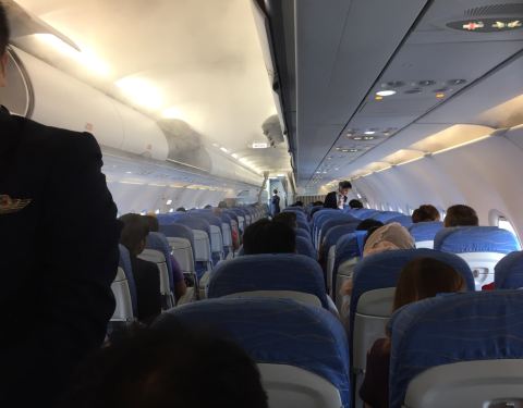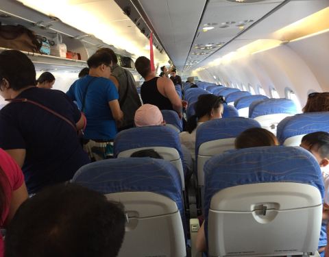 虽然有走错机场的乌龙,还是顺利地到达了机场,顺便把丢在机场的护照拿了回来。这个黄色的飞机就是宿雾航空,菲律宾航空的子公司。就是我们要坐的返回马尼拉的飞机了,我们来的时候也是这一架,机舱里还是那个空...
