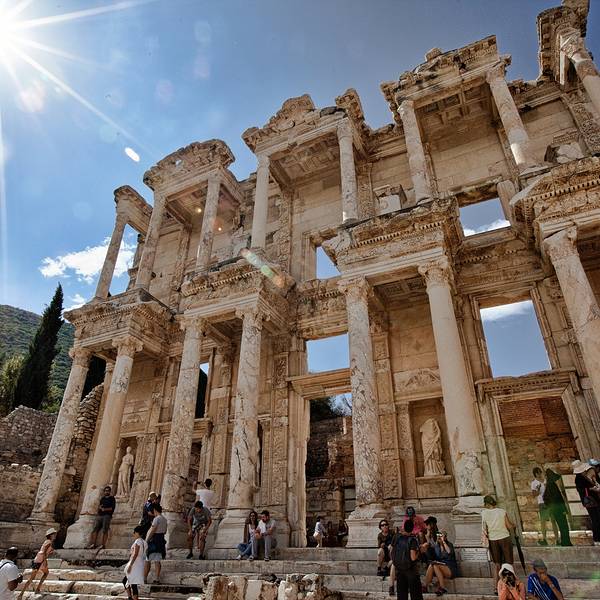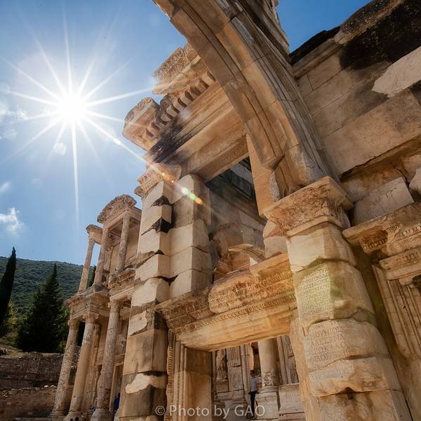 公交:可以乘坐帕姆查克和库沙达瑟的minibus(5里拉,5分钟就能到),然后步行20分钟到达后门的售票处。以弗所古城的两个入口相距3公里,一般游客会选择从上层门进入,一路下行,从后门(下层门)出;