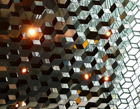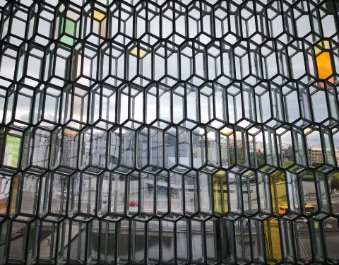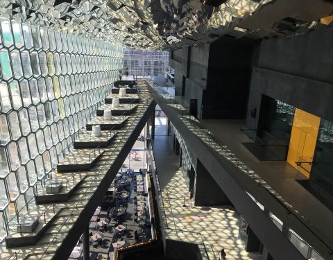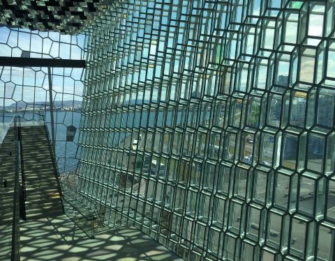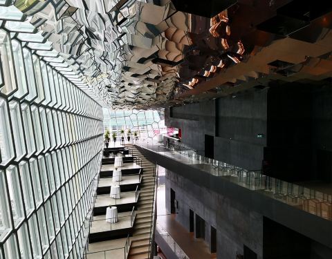 哈帕音乐厅和会议中心位于冰岛首都雷克雅未克的海陆交界处,是冰岛的综合音乐厅、会议中心,由冰岛和丹麦的设计公司联合设计,其灵感来自冰岛冬季夜晚神秘莫测的夜幕极光和火山石的形状。 建筑的玻璃外型好比一个巨大的万花筒,上千块不规则的几何玻璃砖随着天空的颜色和季节的变化反射出令彩虹都相形见绌的万千颜色。 这座现代化建筑是雷克雅未克欣赏音乐和举办重要会议的场所。在这里,你可以听到冰岛交响乐团的演奏,观赏冰岛戏剧和各种音乐流派演出。 这里的音乐厅可容纳1800人,此外还设置有两个排练厅、休息厅、餐厅、咖啡店、音乐唱片店及纪念品店。