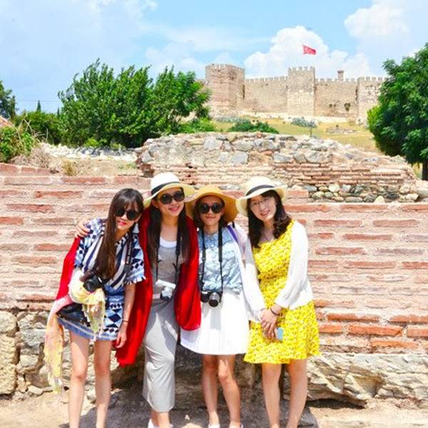烈日下玩耍,大家一定要注意防暑,真的有些晕。防晒,必须要裹严实了坐着的姑娘,一个人,拍拍拍。佩服...门票选择的是圣约翰城堡与博物馆联票,15TL/人,最后因为斯利因斯,博物馆没有去成。
