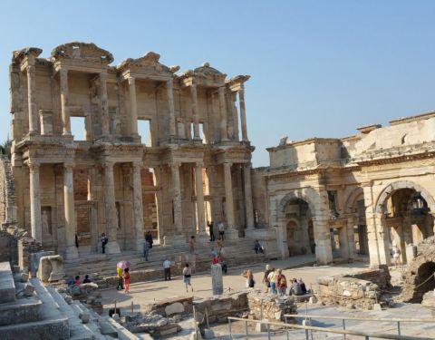 碰到两个老爷爷,要我们看古钱币,其实我心里知道,这都是假的,不过还是要假装很感叹嘛,哈哈这天我们起来开始了塞尔丘克也是整个土国行我最期待的一个部分,以弗所古城。