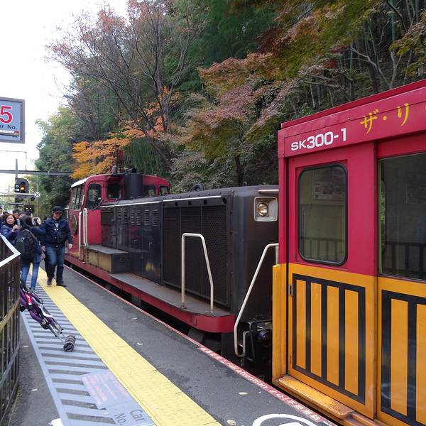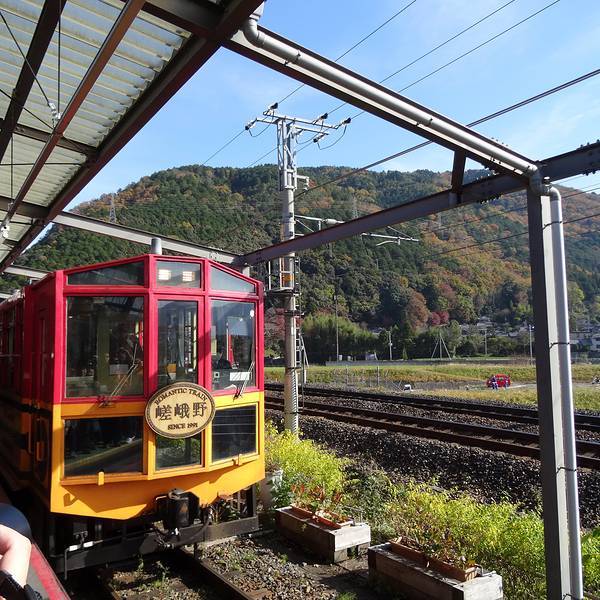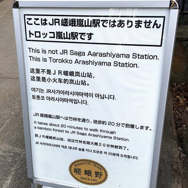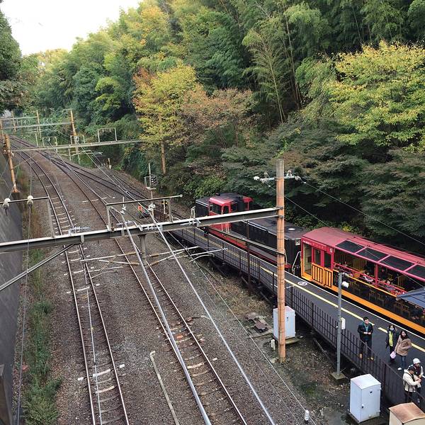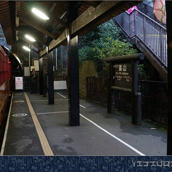 岚山风景区最美的火车站之一!京都岚山观光小火车非常有名,乘坐小火车前往岚山,沿途可以看到不同的美景。小火车的单程车票在国内某宝上面可以提前预定,有普通席位或者软席席位可以选择,普通席位大约100人民币左右,如果是软席席位大约140元人民币左右。岚山站往龟岗站从早上09:10到晚上17:10运行。如果往嵯峨方向,就从早上09:58到晚上18:09运行。由于樱花旺季车票都非常紧张,建议最好提前在网上购买噢~岚山风景区有好几个火车站,而这几个车站之间距离相隔不太远,所以经常有游客会混乱了岚电的岚山站、JR嵯峨岚山站和小火车的岚山站,所以在小火车岚山站的门口处,工作人员就已经体贴的摆好了告示牌,以免客人去错了火车站。乘坐观赏小火车到小火车岚山站的过程当中,沿途的美景会让你应接不暇,春天会看到樱花、秋天会看到枫叶、冬天会看到雪,反正一年四季都美得不得了。小火车岚山站的附近,你还能清晰的看到它的铁路,很有在看日本漫画的感觉。小火车岚山站距离竹林、野宫神社等景点都不远,步行10分钟即可到达!所以从小火车岚山站下了小火车以后,前往各处景点都非常便利。作为最美观光小火车的终点站,小火车岚山站一直起着重要的作用,它是美丽的开始,也是美丽的延续!