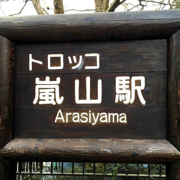 到站啦~~这是嵯峨野小火车的岚山站!!!这个站牌,和jr嵯峨野线的嵯峨岚山站不是一个站哦。对了这个车站有纪念品卖,我买了小火车式样的袋子哈哈哈。我说想拍一下车票,让虫子xi举着,等我拍好后发现虫子xi对我...