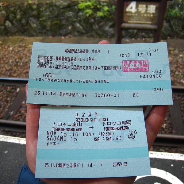 京都的第三日,岚电一日Day! 岚电是京都唯一的路面电车,一日券票价也并不贵,500日元,票面却普通得像是一次性的车票,拿回家发现已在口袋里被揉皱了些许。