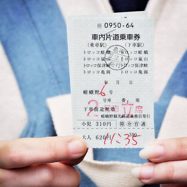 岚电是京都唯一的路面电车,一日券票价也并不贵,500日元,票面却普通得像是一次性的车票,拿回家...