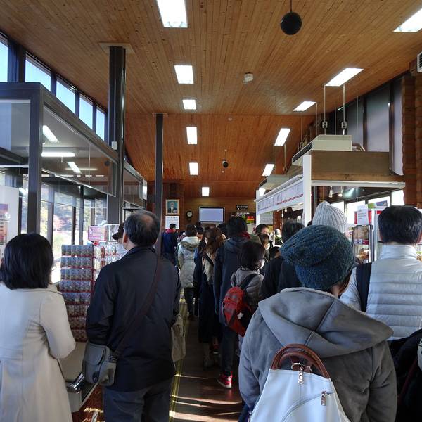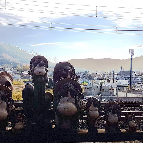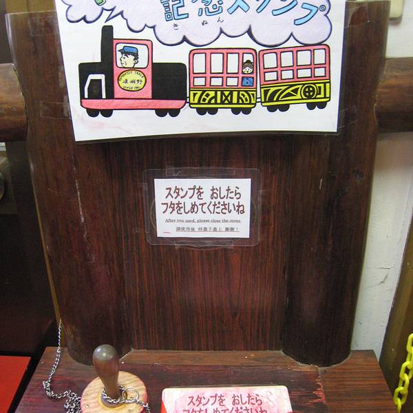 很多人在车站的院子里抽烟,所以如果坐在院子里会有点呛。 院子里的店铺卖一些小玩意儿,有日本造的和风风格的化妆包带一个小镜子,包比A4纸的一半小一点儿,这里卖3个1000还是1050我忘了,之后的景点基本都是500、600一个,机场是700一个,还都不带小镜子。布料有很多花色很好看,买来送人或自用都很好,而且装箱又轻巧又不占地儿,我当时看到想着网上都说各处景区东西都是一个价钱就没买,之后再看到又觉得价钱差好多,终没买。 买了一个手机壳,当时真的是很好看,不过我一个用东西超级仔细的人,居然回来不到1个月就破了。 候车的屋子里面可以盖印章,建议想在这一路盖印章的话,带一个稍微大一点的本子,因为各处的印章都好大啊,拿个小本还真盖不下!