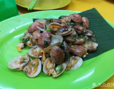 夜市网红店哦,里面的烤鱼味道很不错哦,做的是魔鬼鱼哦,里面的奶油虾也很好吃的你,这里的空心菜放一点点辣椒,味道也是可以哦。