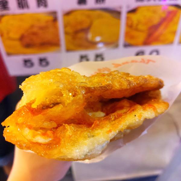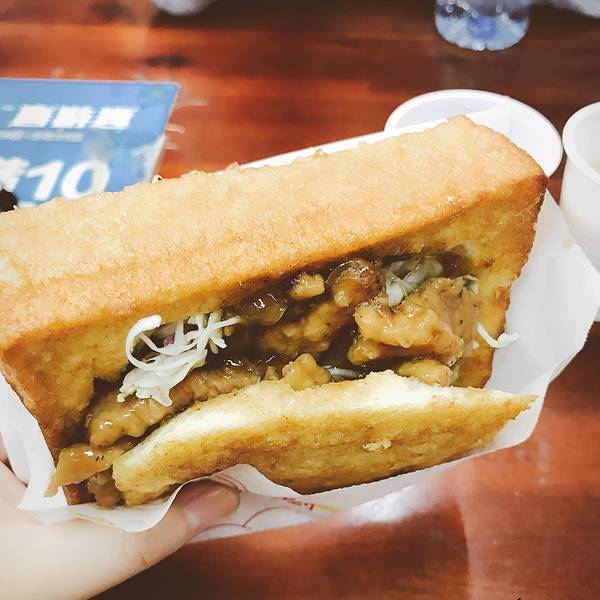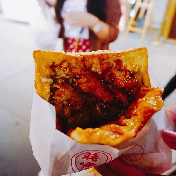 这家烧烤属于典型的台湾烧烤,不撒料,刷酱,酱汁有偏甜...总之不是我的菜。蒋家棺材板,东大门我唯一想要打call的一家店!!!太好吃啦!至今觉得为了照顾肚子,我们仨只买了一个太可惜。厚土司够软够香,里面夹得是黑椒猪肉,肉非常嫩,黑椒酱汁香辣十足。天哪,想到口水又要下来,怎么可以那么好吃。所有要去东大门夜市的盆友,我求求你一定要尝试!