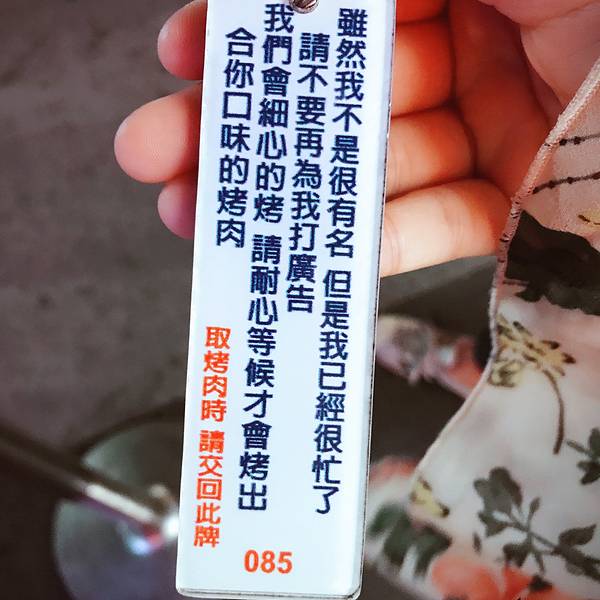 林记烧番参,就是烤玉米啦。选好玉米称重付钱,然后就等着烤好叫号吧。味道呢,玉米本身是非常软糯好吃,但烧烤抹上的酱料,有甜有咸有辣,实在接受无能。第一家烤肉串,排队的人很多,丽丽姐和培培各买了一份,排了近一个小时才拿到。老板很“嚣张”
