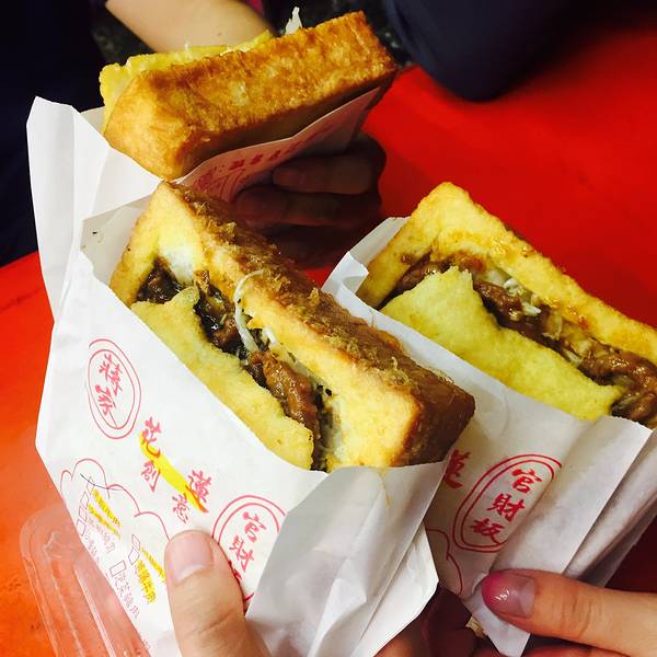 下午原本计划去太鲁阁,路上下起雨来,索性不去了,反正高山峡谷什么的,咱大四川有的是,对咱没啥吸引力。路过糖厂,买了点黑糖姜母茶、洛神花。下午抵达花莲,入住云山海民宿,在很偏僻的乡村,不提供晚餐。休...下午原本计划去太鲁阁,路上下起雨来,索性不去了,反正高山峡谷什么的,咱大四川有的是,对咱没啥吸引力。路过糖厂,买了点黑糖姜母茶、洛神花。下午抵达花莲,入住云山海民宿,在很偏僻的乡村,不提供晚餐。休息到傍晚,去县城找吃的。民宿没有什么特色,不像咱成都周边的民宿有格调县城里看见垃圾车慢慢开过,沿街的商铺居民就往车上丢垃圾,如果错过这个时间,就只能等明天了。在台湾,沿街几乎见不到垃圾桶,在台北垃圾是按袋收费的。开车半小时才到县城,晚餐吃扁食,其实就是馄饨。逛东大门夜市人气最旺的是这家卖官财板的,据观察,就是吐司涂上蛋液烤得酥脆,中间夹各种味道的肉或菜馅,像是方形的汉堡,我们尝了个川辣牛肉。旁边一家卖香蕉饼,淋上巧克力或炼乳,香软可口。