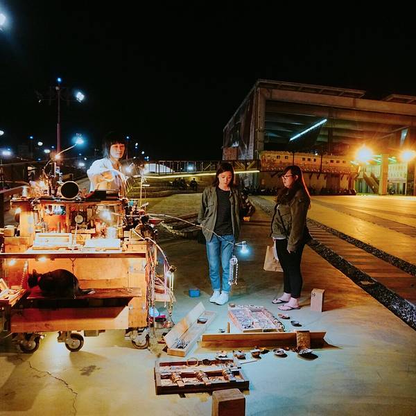 东大门夜市的表演乐队,这样的卖艺者在东大门夜市还有很多离开前,在夜市入口发现一个很复古的推车摊位,搁板上蹲坐着一只黑色的猫。老板出售各种手作饰品,我买了一只形状是螺丝钉的耳钉,虽然还没有耳洞。离开花莲的火车午后发车,找一家店吃午饭,结果碰到一只胖狗,这么大只的流浪狗,你见过吗