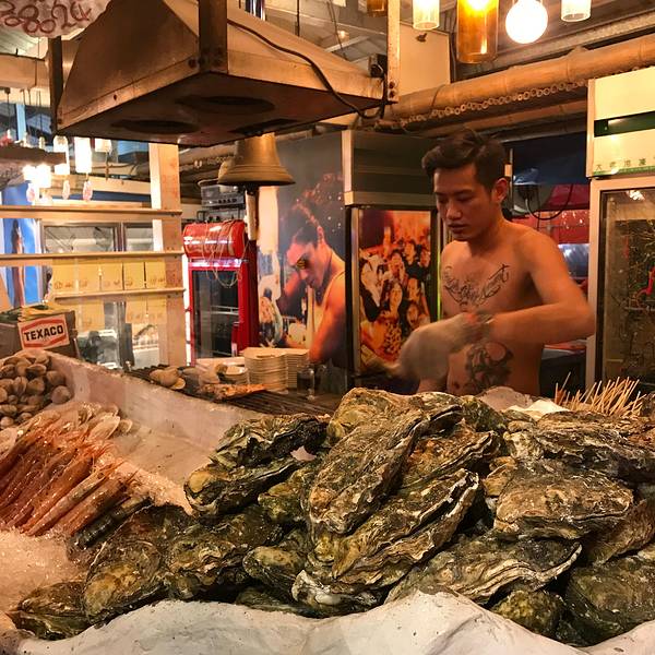 烤生蚝,这边的生蚝都是烤半熟的,不建议吃,即使吃了,也不要点什么降火的凉茶喝,别问我为啥,有小伙伴就是这样搭配的,结果隔天拉肚子拉了一整天!!!!