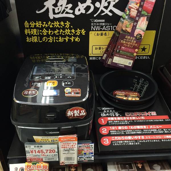 就是这家店,一共6幢楼,我们花了3个小时,只逛了1幢楼的2层,OMG目前日本最新款的象印电饭锅,将近1W人民币,我等穷人还是买个老款的背回去吧。这个据说叫六合一,已经远远超过了微波炉的范畴,煎炒烹炸消毒洗碗一应俱全,价格也很美丽。各种搅拌机、破壁机、厨房小电器,让人眼花缭乱。为什么,这么便宜的空气炸锅!!!只要是日本制的东西,价格都十分惊人,而进口的东西,价格都十分美丽。日本人十分有民族自豪感,信赖本国制的各种产品。