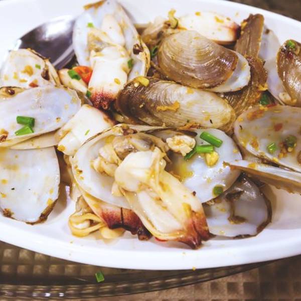 - 这个叫东风螺,很好吃,食材很新鲜。辣炒象鼻螺,这个也不错,肉质饱满而且很嫩