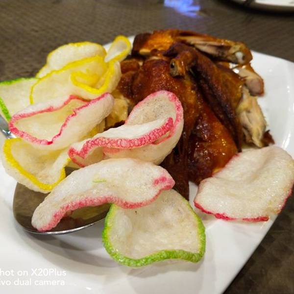 晚上应当地旅游局的邀请一起吃饭,来到了这间渔人码头,也是我们这几天吃的最高大上的一家餐厅了,就在加雅街上。石斑鱼象鼻蚌芝士焗澳龙还有这个烤鸡,伴着五颜六色的龙虾片。爱吃龙虾片的我,烤...渔人码头的晚餐