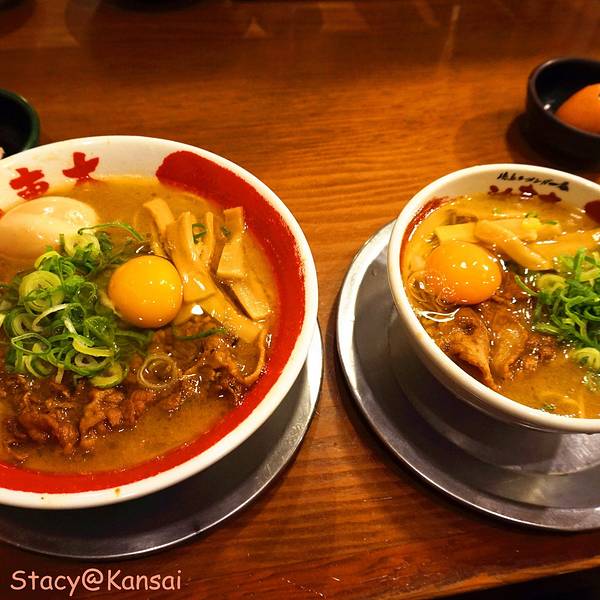 我们实在不想浪费太多时间在排队上,因此就选了当时排队人最少的德岛东大拉面。没想到还挺合我们口味,比起清淡的博多豚骨拉面,东大的酱油味增拉面味道可是重多了。桌上的鸡蛋可以免费取用,直接打在面上吃使拉...