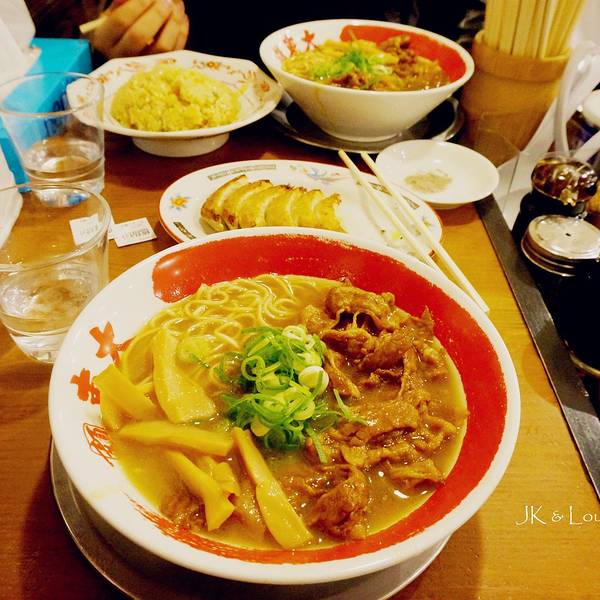 晚上就直接在京都站解决了。京都站里有条叫拉面小路的地方,里面聚集了十家知名拉面馆,间间排队!最后我们选了一家叫东大的拉面馆,这家主要吃牛肉生蛋拉面,生蛋任加。这里是先点单做到门口排队,我们点了一个面加炒饭套餐和一个面加煎饺套餐,等了半个多小时,终于开吃了!日本拉面注重汤底,汤底都很浓厚,吃着够味!