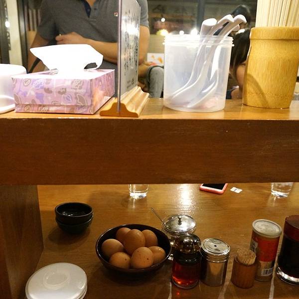 桌上的鸡蛋可以免费取用,直接打在面上吃使拉面的口感更加爽滑,真的非常好吃