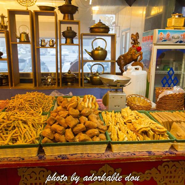 饭店在当地很有名,各种特色应有尽有。锅茶最具特色,把奶茶、奶酪、牛肉干和一些不知名的东西放在一个大锅里煮,香气四溢。手把肉也是必点的菜品,还有各种油炸面食口感香酥脆以及一些叫不上名的小吃味道也很好。店面装修陈设极具蒙族特色,到处是蒙族文化元素。