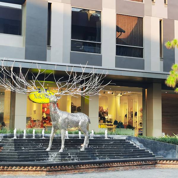 在清迈古城西北,古城与清迈大学之间有一条宁曼海敏路,简称宁曼路,这里是闻名的时尚汇集区,也是清迈年轻人喜爱的地方。 玩法建议 宁曼路的主干道上车辆很多,但其实不光在这条主干道上可以逛,在垂直于宁曼路的若干安静的支路也有很多好看好玩的店铺。泰国的支路叫Soi,主要集中在宁曼路东侧单数的支路里,因此逛的时候千万不要错过。 不过要记得可以在下午四、五点的时候去逛,因为去早了的话很多店是不开门的。这里的生活节奏比较慢,人们大多生活的比较悠闲。 风格独特多样的建筑 整个街区里汇集了很多风格的建筑,有欧式的、有传统东南亚风格的,街道上时不时的还会出现泰国人信仰的四面佛。但是,较吸引人眼球的还是很多彩色雕塑,它们都以所属店家的主题为设计灵感,比如这个餐厅如果以猫为名字,那么店铺前就会出现一只巨大的猫造型雕塑。一路走,你还会发现小鹿、恐龙等,很多游客都会与它们合影留念。 走在宁曼路上,你会看到各式情调的店铺、咖啡馆、酒吧、时尚小店,多为设计师、艺术家和演艺明星所开,设计感强,即使只是走走看看,也是很惬意享受的一件事情。 各类人气爆棚的美食场所 如果逛累了,你还可以去蝶豆花主题餐厅、iBerry、Mango Tango甜品店以及Ristr8to Latte Art Café这些较有特色的餐厅和咖啡馆休息一下,品尝一下当地的特色美食。 蝶豆花主题餐厅里不管是米饭、面还是饮料的颜色都是蓝色的,据介绍这里的食物都是经过泰国的一种蓝色的花Anchan染色而成,泰国街上的蓝色饮料也是用这种花染的,据说放入蜜糖会变成紫色。