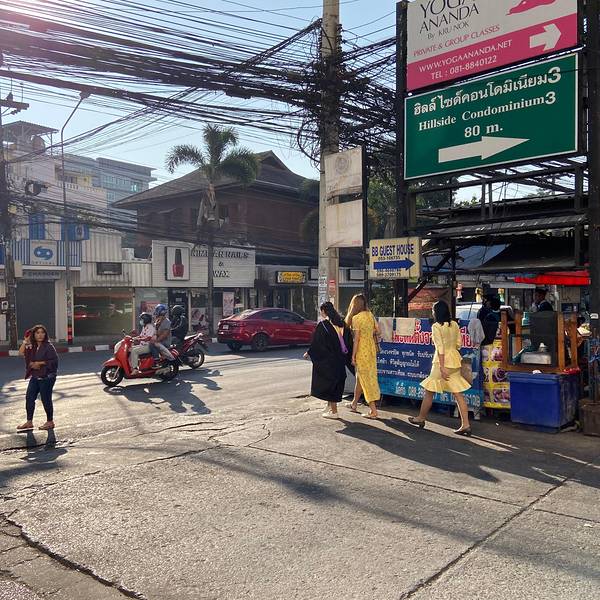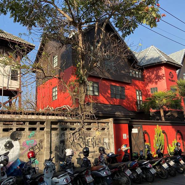 吃完以后走走看看发现没啥想玩的,去711里又是一通操作,买了一堆奶回去怼了,晚上耍耍手机看了看...到达清迈后,立马感受到了和曼谷完全不一样的节奏,“悠闲”是这个城市最大的特点,曼谷现代化的城市生活和清迈好像完全无关,这仿佛就是个世外桃源同样都是车水马龙,但清迈人仿佛都不急着赶路,马路上很少有人...到达清迈后,立马感受到了和曼谷完全不一样的节奏,“悠闲”是这个城市最大的特点,曼谷现代化的城市生活和清迈好像完全无关,这仿佛就是个世外桃源同样都是车水马龙,但清迈人仿佛都不急着赶路,马路上很少有人鸣笛我住在宁曼路上,住在这里最大的好处就是远离城市的喧嚣,到处充斥着年轻人的气息,随处可以看到大把大把的年轻人泰国开摩托车一定要带头盔,不然抓到会罚款清迈好多年轻人都会选择租一辆摩托车,这也是我这次一个小小的遗憾,没有围着清迈转很远,就光靠11路公交车了,漫无目的的走着,往邓丽君生前最爱的餐厅走,走着走着我肚子饿了,随便路边找了个看上去很精致的餐厅就进去了这是我来泰国后吃过的最好吃的饭,没有之一,应该是茶油或者植物油炒出来的,特别特别香上面喝着像柠檬水,下面一个椰肉一样的不知道是啥茶油通心粉,难吃程度排我来泰国后的第一名,扎扎实实的吃了一口就吐了这只猫真的乖的我都惊讶了,好乖好乖,我在这个餐厅光撸猫就撸了半个小时这一顿吃的我心情不错,虽然通心粉吃的我很烦躁,但是这个饭是真的太香了,这只猫也很香,撸的我心情大好,不过挺贵的,好像最后三个菜消费了200人民币左右,问题不大,这只猫我给满分。没有添加任何滤镜,纯手拍,没P图随手拍了几张清迈的建筑大多充斥着奔放与热情,年轻的气息扑面而来,我觉得给自己房子涂装成这样颜色的人和我三观一定很合吃完以后走走看看发现没啥想玩的,去711里又是一通操作,买了一堆奶回去怼了,晚上耍耍手机看了看决定第二天要去塔佩门这个清迈必打卡景点,就像曼谷的大皇宫一样路上买的一根香肠,太大了真的,咬第一口感觉很棒,但肉质不是很紧实,咬到一半的时候就有点腻了meiji,我来泰国喝的几乎所有的牛奶都是在711里买的meiji,实在是太香了,太好喝了,只恨711没在中国发扬光大对了711里是支持支付宝和微信支付的,会根据实时汇率扣人民币,有的时候比泰铢支付还便宜,所以我发现我的泰铢兑多了,在加都加商场里兑换了4W泰铢,来了又兑换了4000泰铢,后来找了个地方兑回去了。