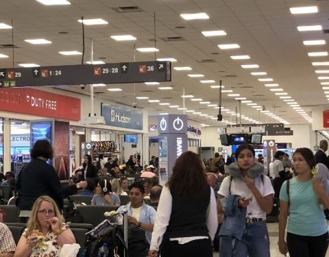 巴士: 在主要酒店有小班车到机场. 有常规机场巴士到各地和墨西哥,从D号门出发
