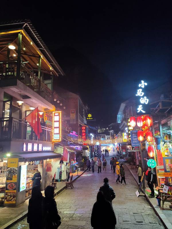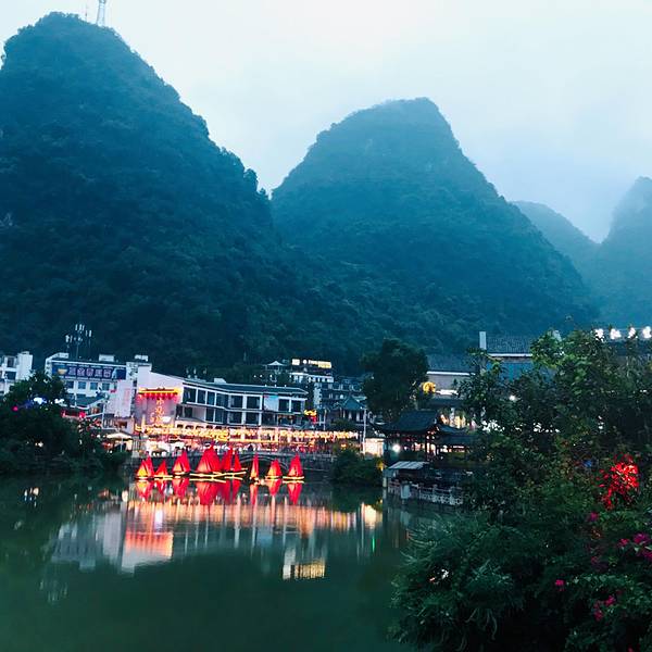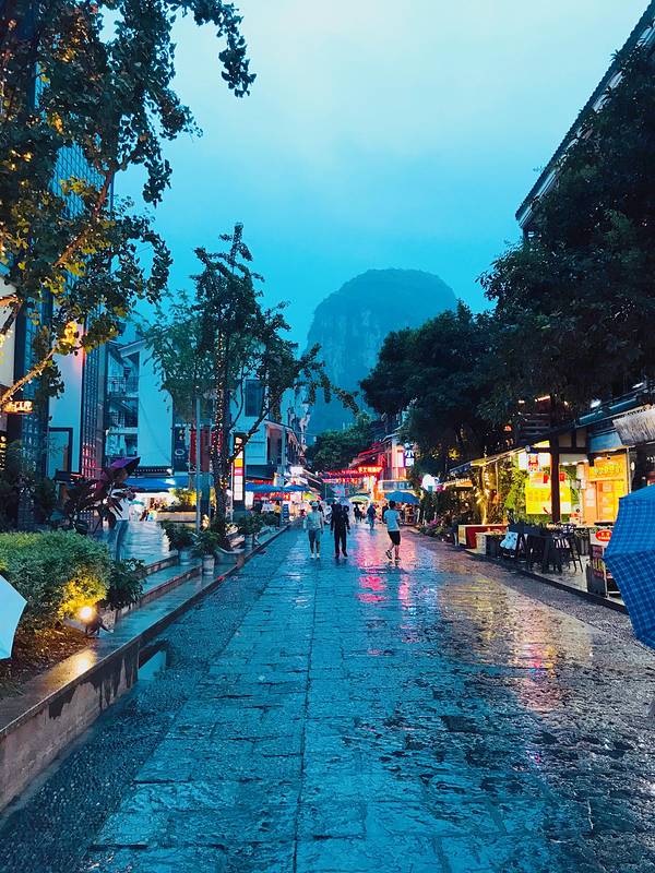 - 我和游轮上认识的小哥约好晚上同游西街,品尝西街美食。阳朔码头到西街2公里左右,可以选择打车也可以步行