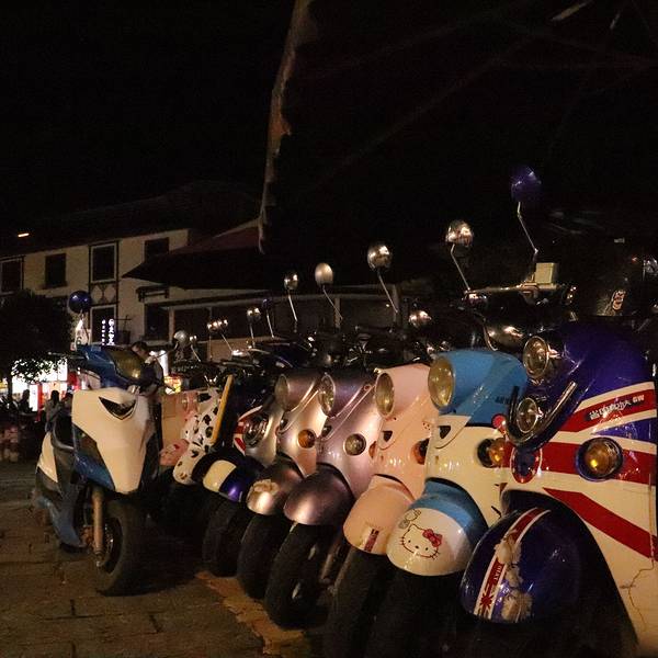 民宿的姐姐建议我们下午可以去骑行 ,结果这雨就一直下个不停了,一直等到4点多,时间也来不及了,临时改行程,直接去西街逛一逛。 沿着民宿下去走2分钟左右就有船,每个人2块钱,二三分钟就到河对面了。下了船之后大概走10分钟左右,就可以到达西街美食街。船家是个五六十岁左右的叔叔,不善言辞,从我们上船到下来一句话都没说。但是临走的时候我问他西街往哪个方向走,虽然我听不太懂,但是上岸他一直指着左手边的方向,示意我们走反了,看得出来非常着急,瞬间就被感动了。霜霜一路上都吵着要买个斗笠,还跑去问了阿姨在哪买的,哈哈哈。结果还真的让她买到了,这个斗笠简直成了霜霜的宝贝 ,这几天走哪带哪,尤其是她背着斗笠从机场出来的时候,我简直要笑死了。步行10分钟左右就到达了益田西街,远远就看到了这一排啤酒鱼。这家大师傅啤酒鱼估计得有十几家分店吧,也是当地最火的一家,到处都能看到。刚进去,一眼就看到了 “早日暴富”这个牌子,麻溜的跑过去摸了一下,希望能沾沾好运,让我也能早日暴富,哈哈哈。不知道为什么,大家突然觉得洋洋这个发型像极了林有有,而且越看越像,甚至都开始觉得她长的像了,哈哈哈。超级喜欢“猫的天空之城”,每去一个地方,只要有他们家的店,就一定会去打卡的。而且我特别喜欢搜集明信片和冰箱贴,如果不给自己写一张明信片,带走一个冰箱贴,再美的旅行都会感觉少点什么。但是我最爱的明信片,终究还是干不过手里的东北大板,吃着吃着就不知道把明信片扔哪里去了,哈哈哈。小姐姐们不知道在哪买的这个东北大板,超级好吃。在他们家对面是个奶茶店,墙上有这么一个大大的翅膀,拍照真的是太好看了,不过人很多,需要排队等哦~走着走着就下起了雨,而且越下越大,不知道怎么的就拐进了一家衣服店,小姐姐们这购物欲一下就打开了,进去之后就出不来了,不停的挑衣服试衣服,买了得有十几件吧,哈哈哈。特别喜欢傍晚雨后的街道,有种说不出的安静,伴着异常清新的空气,映着暖暖的灯光,天空又蓝了一个度,格外的舒服。夜色渐深,华灯初上,这个场景让我突然想起了《萤火之森》,银和萤最后在一起的场景,直到现在银的消失都是我的意难平,安利下这个动漫,真的超级好看。这家叫“山色西餐”的店,也可以过来喝一杯哦。还有一个驻唱的小姐姐,尤其是下着小雨,显得她的歌声格外的美。