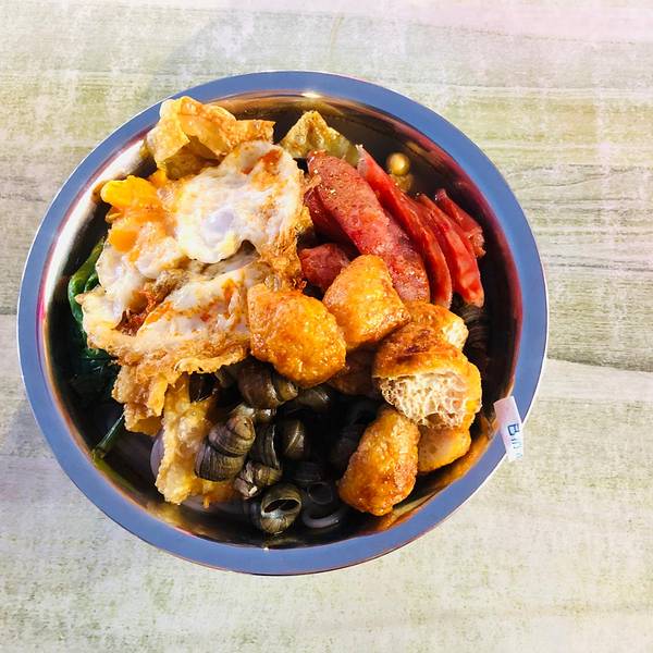 - 满满的螺丝满满的腊肠满满的豆泡,还有煎鸡蛋油腐竹,还能自己加酸笋酸萝卜酸豇豆,太爽太有食欲了