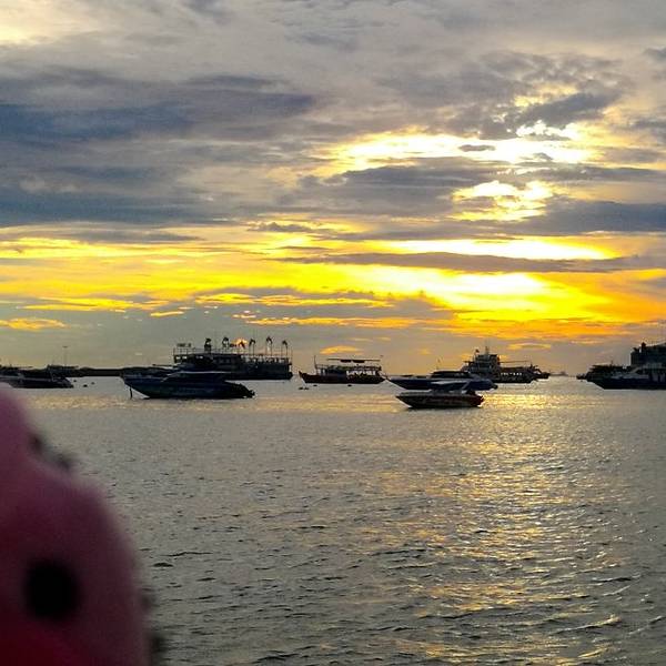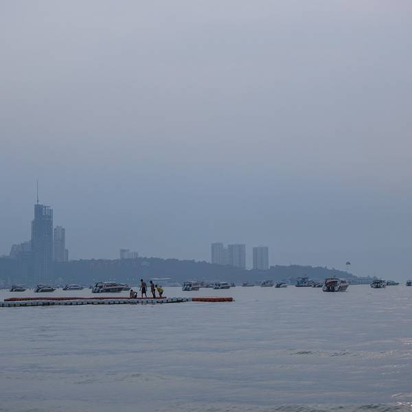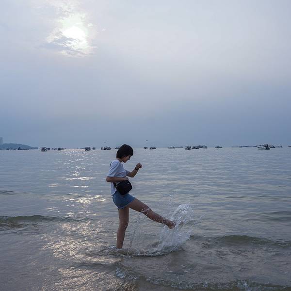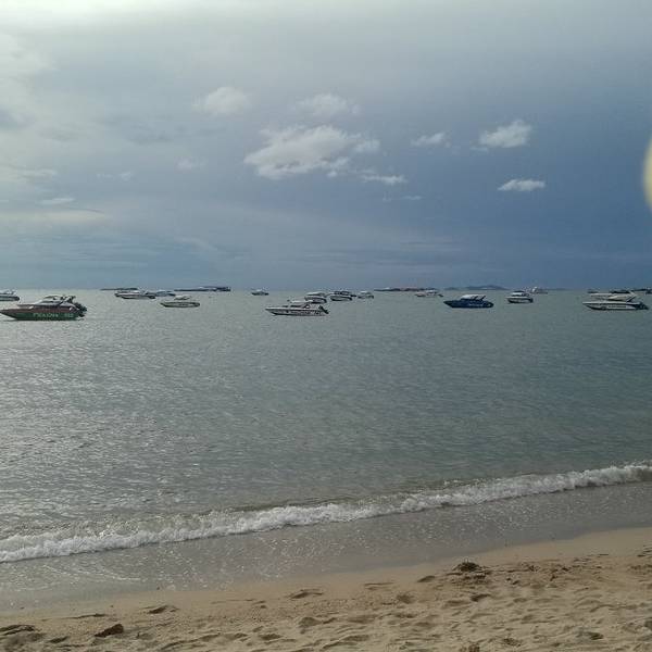我们到 芭提雅 的这个下午天气不大好,刚刚下完小雨,天还没有完全放晴。我们只在海滩路随意逛了逛,海面上很多正在玩飞行伞拖曳伞和摩托艇的人,也有很多拿着水上项目价目表的人用中文问我们要不要玩。我们想着时间不早啦,明天再玩吧!没想到玩沙子玩水也一直玩到了太阳下山。