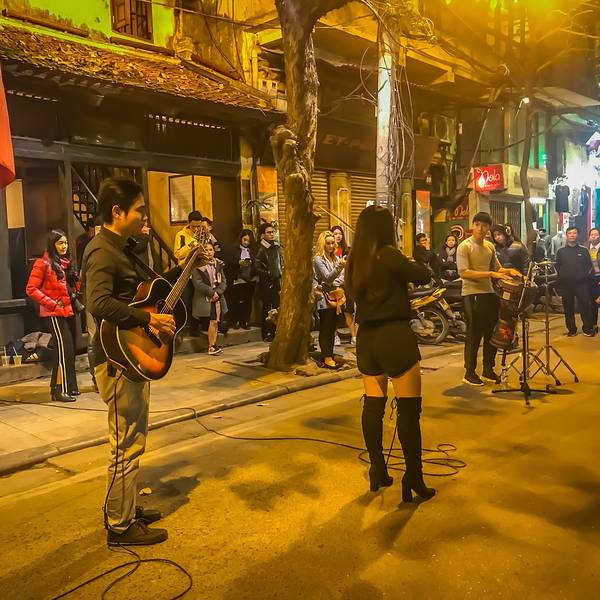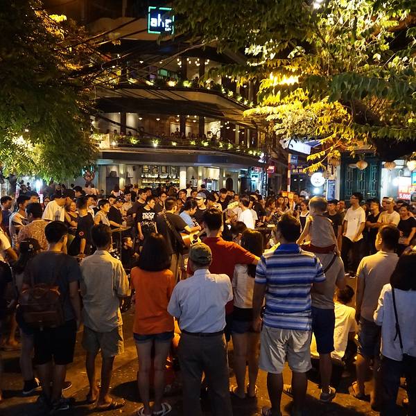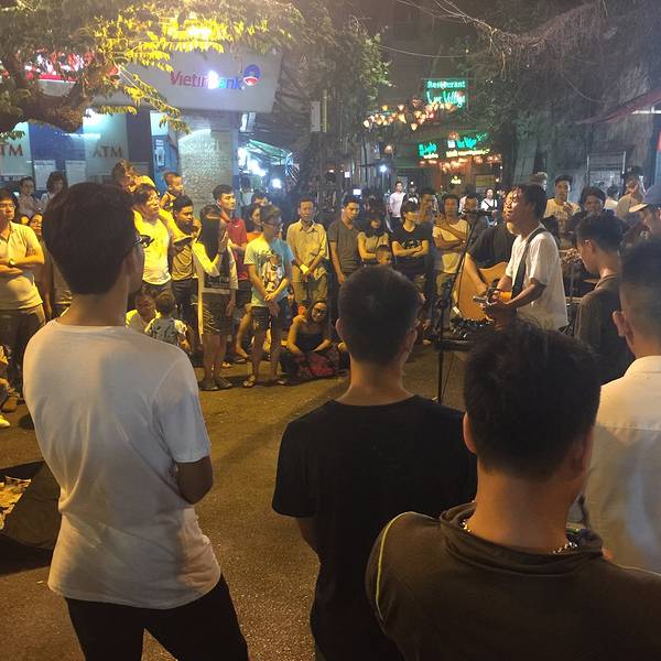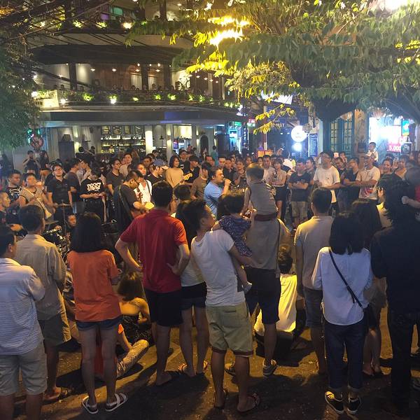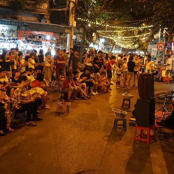 在街边摆个小桌小凳 喝着茶吃着瓜子聊着天 又或是在小楼阳台 喝着咖啡看着楼下 车来车往,人潮攒动 这些就是他们的日常我们其实很好奇他们的收入 在他们脸上好像看不到压力二字 事实上应该是比国内低的这里聚集着众多欧美老外 比起快节奏的都市化 大城 市 他们好像更喜欢这里 在 广州 呆过的Tom 来了这里就不愿回去了 还把女朋友也带来了这里开始有点喜欢这个城市 是在夜幕降临的时候 老旧的36行老街像瞬间被点燃的rocker走几米就能遇到一个唱歌的歌手 或是弹唱的艺人 打鼓的人打的很开心 拉提琴的拉的很投入 甚至拉完还热泪盈眶 很过瘾就想这样听一整夜 话说光站着就很累啊 更何况还要不停演奏 但他们却很享受 突然被这种魔力所感染 然而就是第二天我们又想过去听得时候 他们就不在那里了夜晚的还剑湖边 老人跳着恰恰,探戈 年轻人跳着爵士,街舞 还有 越南 特色的小舞台 浓浓的当地特色情歌对唱走着走着 随脚拐进一个剧场 越南 水上木偶不同于 中国 的提线木偶 他的线是在 水里 很难想象这是怎么操作的 不明觉厉夜晚还属于这些五颜六色的灯具~