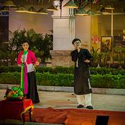 我们其实很好奇他们的收入 打鼓的人打的很开心 很过瘾就想这样听一整夜 还有 越南 特色的小舞台