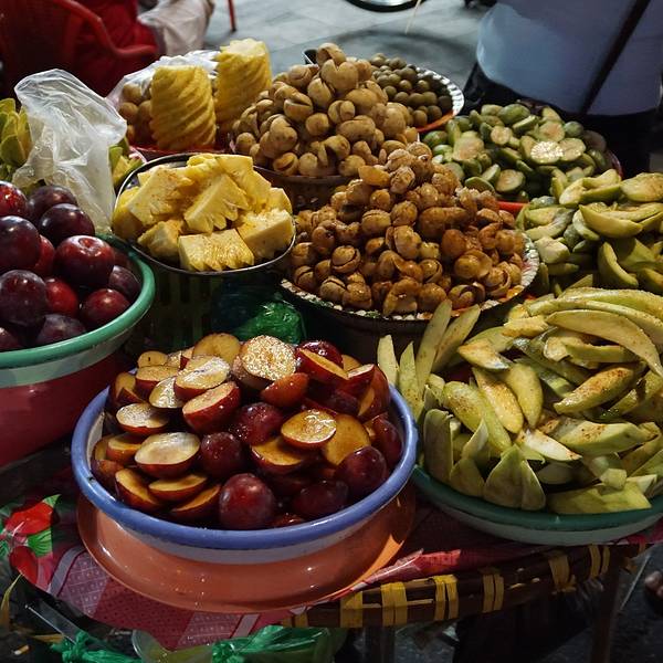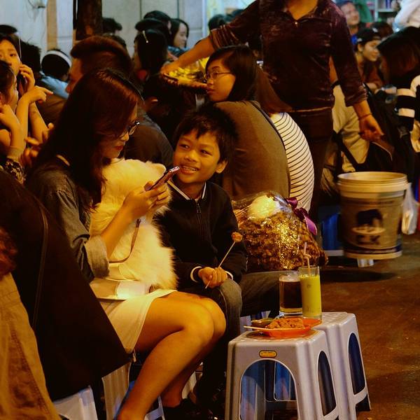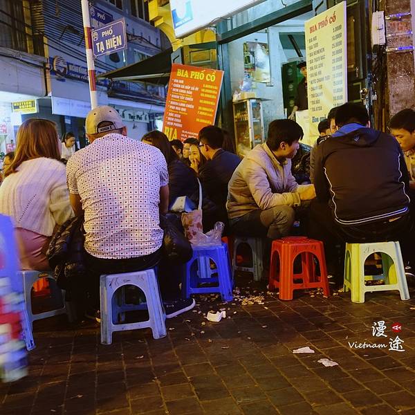 如果看到街头那一大堆人簇拥在一块儿,坐在24厘米高的小板凳上,不用好奇,他们不是在等什么表演,只是一种生活态度。入乡随俗,小漫和阿途也找了两张小凳子坐下,从旁边椅子上拿来一张菜单,东西都很便宜,生啤只要15000d(RMB4.5元),小吃也只有10元左右一份。听说,啤酒配炸鸡是最完美的搭档哦,那就一定不要错过了。喝着小酒,吃着炸鸡,看着来来往往的人群,那一刻,仿佛已经融入了这个城市,一个不那么完美,却带着着实让人喜欢的调调。夜色迷离,这一天感觉过的漫长却又惊喜,带着些许倦意,回了酒店。