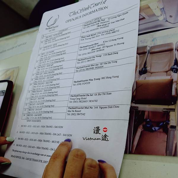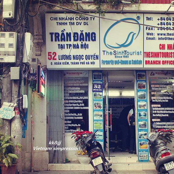 三十六行街就是河内的背包客聚集地,这里距离还剑湖、大教堂、胡志明纪念堂、巴亭广场等都不远,步行游玩的话大半天足够了。下午的时候,越南人喜欢三五一堆的坐在街边喝东西。越南的河粉比较清淡,难怪越南人都那么瘦,吃的时候淋上柠檬汁,再加点小辣椒,味道啧啧了,不过越南的小辣椒真的挺辣,一般店家还会给一小盘蔬菜,可以加到河粉里,不过越南的蔬菜叶大多有点怪怪的味道。这个味道和广州的肠粉很像,不过我不喜欢吃。在国人坐的最多的新咖啡家预订的河内到顺化的sleeping bus,其实是想直接去会安古城的,可是从河内向南发的车,基本上都是只到顺化,然后从顺化再转车去。新咖啡初一不发车,直接告诉我们乘坐其它公司的车,实际乘坐camel公司的车。越南的巴士好像除了新咖啡与futa家是按座位号乘坐以外,其它家车票好像都不打印座位号,上车随便找座,还好我排在了前面,抢到了下铺还是靠前面的位置。 如果想坐新咖啡的车,要认准下图The SinhTourist的标识,三十六行街内有好多仿这个名字的假新咖啡。