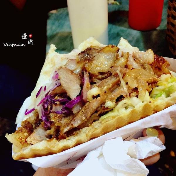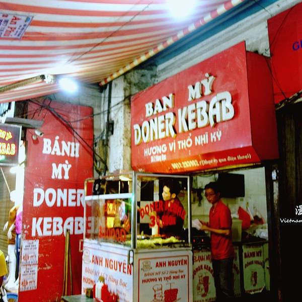 店铺很小,而且不新,比起那些豪华的代理店,总有种走错门的感觉,但是隔壁家的门牌号总不会骗人吧。于是,开始按照我们的路线订票。定完旅程票,突然感觉倍感轻松,好像后面几天的行程都开始着了谱,有了调夜晚的三十六行街好像换了一幅模样,昏暗的夜色,人头攒动,小漫觉得有点饿,便冲着有名的XOI YEN,准备去尝尝他家那非同一般的糯米饭,但走在半路上却杀出个Doner Kebab,远远的就传来一股肉香味儿。两个老外在门口的一张小桌子上,吃得正香,见小漫探头张望,立马竖起大拇指,对他家的烤肉饼一阵大夸,于是,俩人放弃了糯米饭,一人一个肉饼,满满的烤肉,喷儿香的,只要30000d哦吃饱了,开始在越南的夜市闲逛,分不清哪里是开始,哪里是结束,无尽的马路交错横叉,每一条都很热闹,每一条又都很相似,如果分不清,那就尽情的迷路吧。