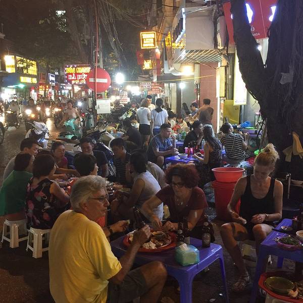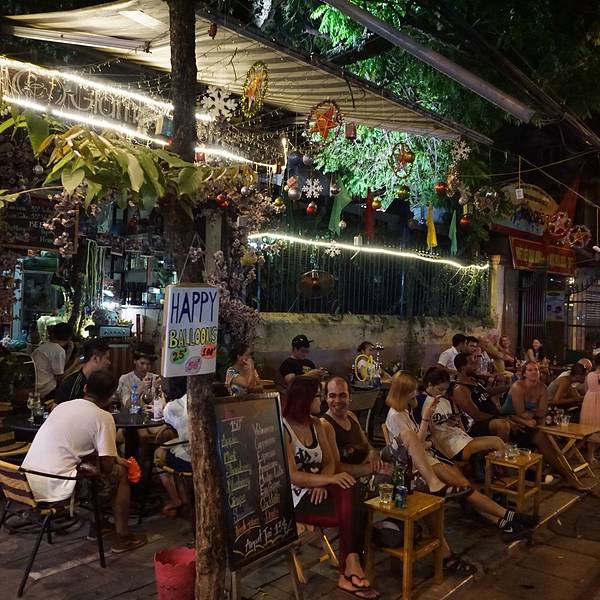 三十六行街就是河内的背包客聚集地,这里距离还剑湖、大教堂、胡志明纪念堂、巴亭广场等都不远,步行游玩的话大半天足够了。下午的时候,越南人喜欢三五一堆的坐在街边喝东西。越南的河粉比较清淡,难怪越南人都...三十六行街就是河内的背包客聚集地,这里距离还剑湖、大教堂、胡志明纪念堂、巴亭广场等都不远,步行游玩的话大半天足够了。下午的时候,越南人喜欢三五一堆的坐在街边喝东西。越南的河粉比较清淡,难怪越南人都那么瘦,吃的时候淋上柠檬汁,再加点小辣椒,味道啧啧了,不过越南的小辣椒真的挺辣,一般店家还会给一小盘蔬菜,可以加到河粉里,不过越南的蔬菜叶大多有点怪怪的味道。这个味道和广州的肠粉很像,不过我不喜欢吃。在国人坐的最多的新咖啡家预订的河内到顺化的sleeping bus,其实是想直接去会安古城的,可是从河内向南发的车,基本上都是只到顺化,然后从顺化再转车去。新咖啡初一不发车,直接告诉我们乘坐其它公司的车,实际乘坐camel公司的车。越南的巴士好像除了新咖啡与futa家是按座位号乘坐以外,其它家车票好像都不打印座位号,上车随便找座,还好我排在了前面,抢到了下铺还是靠前面的位置。
