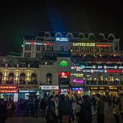 听说三十六行街夜生活很热闹,我们也去感受一翻,好多街头献唱的~ 而且大家都很enjoy的跟着舞动,我们受感染也跟着舞~ 在夜市找了个取款免费的ATM取了200万。Yuli说汇率还不错,有3329。去过泰国也看过各大城市的夜市,感觉到卖的东西都差不多,我们也就没有特别想买的冲动。三十六行街三十六行街【越南版的OK便利店】(看到这个牌子的时候,说明你已经进入河内夜市范畴了。。)三十六行街三十六行街三十六行街三十六行街随意的抓拍几张富有越南特殊的照片就导航去古城门(后来上蚂蜂看了照片就怀疑这个是不是古城门了,估计再往前走那个才是吧。不管了,反正就叫它古城门好了。)今天的行程完美结束,我们导航回酒店,由于出来那会没有定位酒店位置,我们凭着模糊记忆跟着导航走到酒店附近,死活就是找不到,路上问了2.3个行人花了近半小时才找到。这个故事告诉我们记得把酒店位置记清楚。