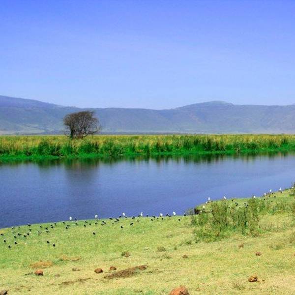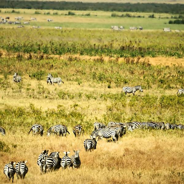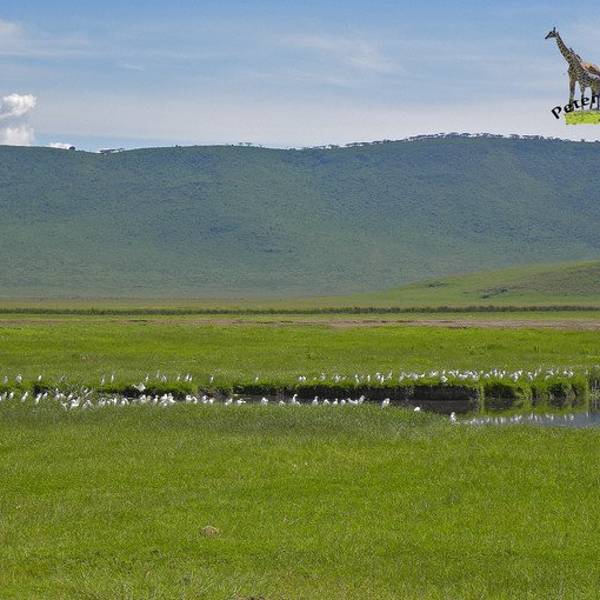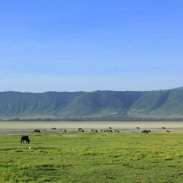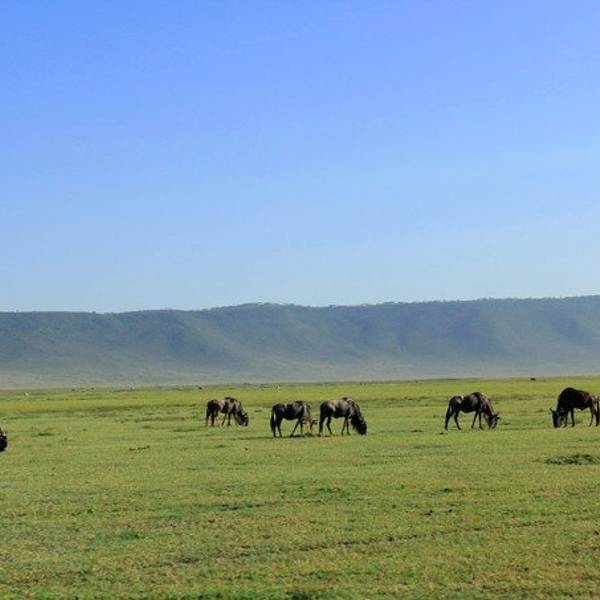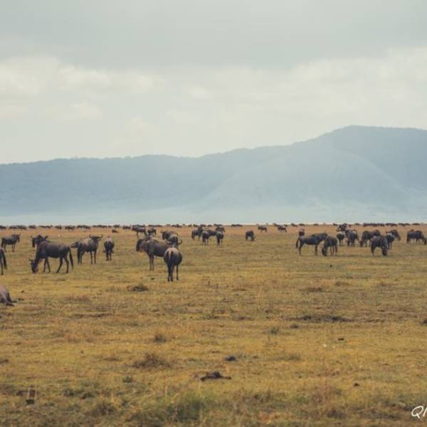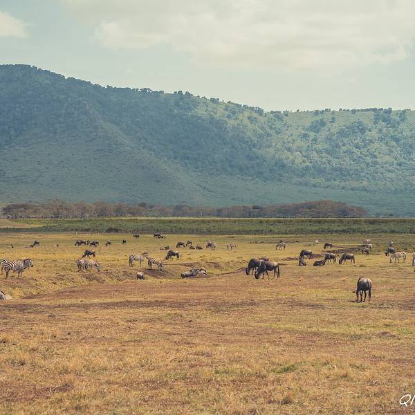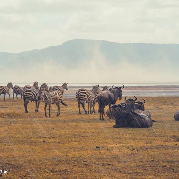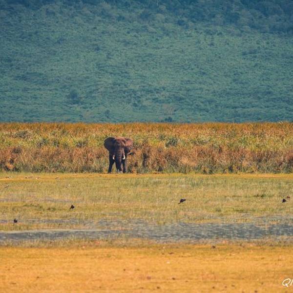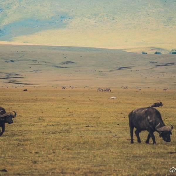 终于,车一路驶向扣人心弦,万众瞩目,波澜壮阔的恩戈罗恩戈罗火山口。“恩戈罗…恩戈罗…恩戈罗…”传说这儿以前是马赛人的牧场,马赛人的牛脖子上挂着铜铃发出“恩戈罗恩戈罗”的声响。多美的名字,好像马赛人的牛群走过扬起一片尘土,尘土之后,是千万年屹立不变的金合欢,斑马、角马、羚羊活跃在身后的每一粒尘埃里,世世代代;大象、水牛、狮子络绎不绝;也许足够幸运,光斑之下还有一头弥足珍贵的白犀牛。250万年之前火山最后一次喷发,从此恩戈罗恩戈罗火山口如同一个圆盘,镶嵌在东非大地,火山口内水草充沛,动物们无需为了追寻食物而四处迁徙,不论何时来到恩戈罗恩戈罗火山口,她都会呈现给你以最温柔的草原风景。