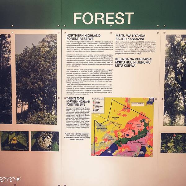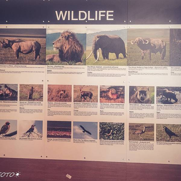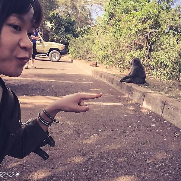 第二天一早8点多,我们出发前往恩戈罗恩戈罗保护区,没有赶在清晨。恩戈罗恩戈罗保护区的门票为24小时有效,如果我们6点入园(大门最早6点开放),那就同样得在6点之前离开,似乎会使之后的行程太过紧张。原本想着10点进公园进出都方便,又一次,高估了非洲人的速度。Saba帮我们办门票并且叮嘱我们小心狒狒,嗯哼,它们可是著名的小偷。就当我们从卡拉图半小时的车程开了一个多小时的车过来现在10点,接着我们在保护区门口的展厅里晃了好几圈,做了好几遍阅读理解,又去外面逗了会狒狒,遇见了一个可爱的广州老奶奶带着孙女聊了半天,又闲着无聊对着巡洋舰拍了好久照……(展厅里介绍着一些恩戈罗恩戈罗保护区的故事)(真的很慢啊!!只能拍自己惹……嘤嘤嘤…)11点,Saba回来了……