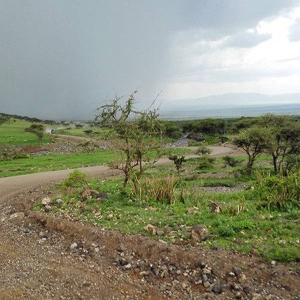 离开塞伦盖蒂,我们前往恩戈罗恩戈罗国家公园。汽车飞驰了一个多小时,司机突然放慢了车速。他回过头来,神秘地对我说:“I will give you a surprise”。我想,大清早的,他能给我什么惊喜呢。但我还是充满了期待。