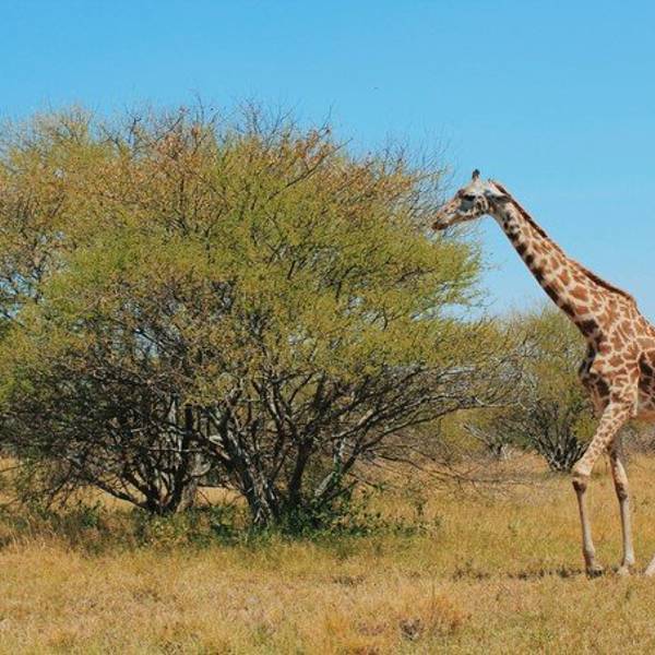 说着,他把车停在了路边,指着左前方的一处丛林。只见一只长颈鹿正优哉游哉地在细瘦的树丛间晃荡。我完全没想到在这样的地方与长颈鹿不期而遇,瞬间激动不已。这是我第一次在野外看到长颈鹿。真是一个巨大的惊喜!
