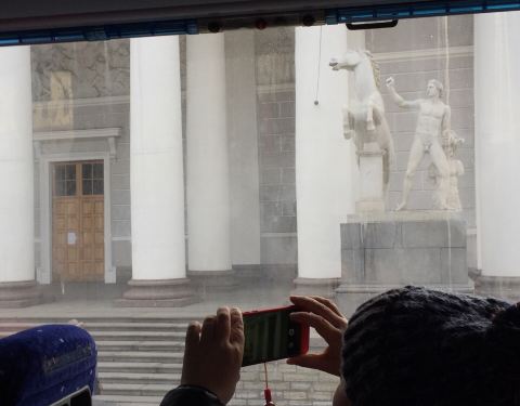 时间关系没有进入参观,就在建筑的门口拍照留念。建筑上还有一个尖顶非常的气派这个整个建筑的设计严谨,简明在门口还有一些雕像裙,象征着俄罗斯的水手精神。建筑上还有一个尖顶非常的气派。时间关系没有进入参观,就在建筑的门口拍照留念。