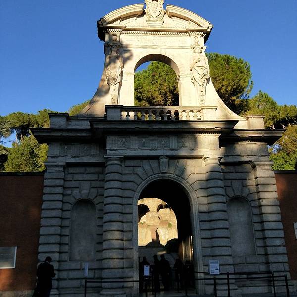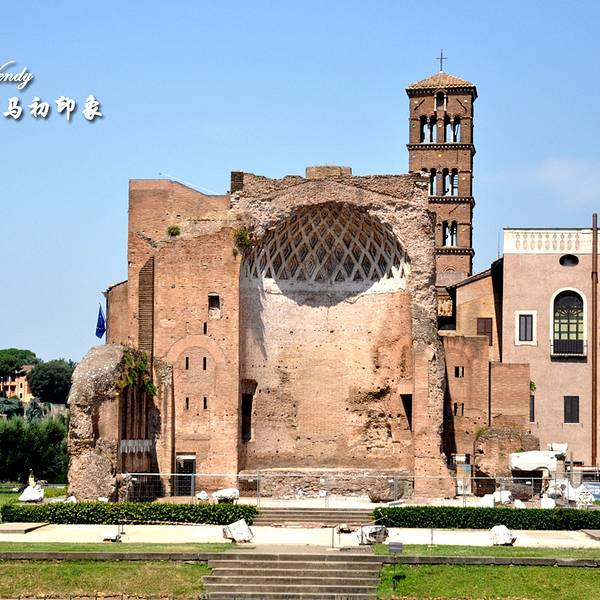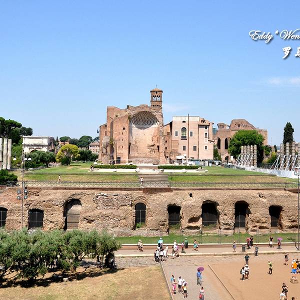 从斗兽场二层俯拍,君士坦丁大帝凯旋门的右侧就是维纳斯罗马神庙(Temple of Venus and Rome)。
