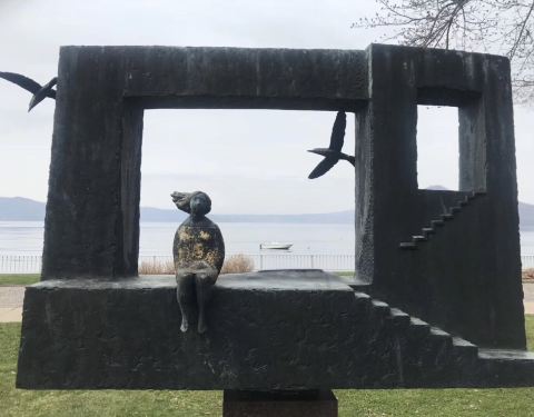 其实顺便它的湖畔走走也是很不错的,这个雕刻公园里面有着大大小小的不同造型的雕塑,坐在湖边的长椅...