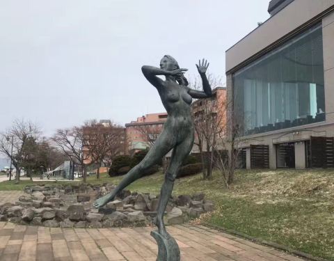 洞爷湖畔的壮瞥町、虻田町和洞爷温泉街,环绕湖畔一周,都是野外雕刻公园,据说一共是有58尊的雕像,但是住在温泉街这里大概能够看到七八尊吧。在湖畔亭温泉酒店的对面是一个胖胖的男人吹着小号,在他的脑袋上还停着一只海鸥,这也是曝光度最高的雕像之一了。总体来讲,这些雕像的主题是人与自然的和谐。