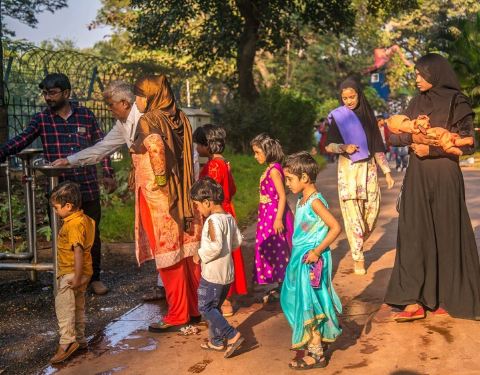 空中花园又名帕西人花园,是孟买市区一处充满历史韵味与独特风情的城市绿洲,以其别具一格的园林景观和城市视野吸引着无数游客与当地居民。这座花园坐落于马拉巴山的山顶,独特的阶梯式布局让花园宛如悬浮于城市上空,故而得名 “空中花园”。漫步其中,错落有致的绿植景观令人心旷神怡,整齐的灌木迷宫、色彩缤纷的花卉,以及造型各异的雕塑相映成趣。尤其是那些修剪成动物形状的灌木丛,栩栩如生。 站在花园内,可将孟买的壮丽景色尽收眼底:阿拉伯海波光粼粼,城市天际线与海岸线交织成一幅迷人画卷,还能眺望到象征孟买的地标建筑 —— 印度门。清晨或傍晚,常有当地人在此散步、锻炼、野餐,享受悠闲时光;周末,花园更是热闹非凡,是家庭聚会和朋友出游的热门选择。
